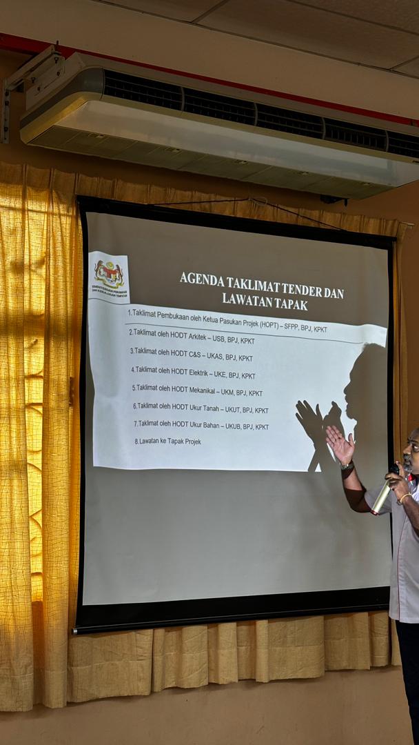 KINTA, 23 Oktober 2025 - Satu (1) taklimat tender bagi cadangan pembangunan di Desa Chemor Megah Dua yang telah dilaksanakan oleh wakil-wakil daripada pihak Kementerian Perumahan dan Kerajaan Tempatan (KPKT) selaku pemilik projek. Taklimat ini turut disertai wakil daripada Lembaga Perumahan dan Hartanah Perak (LPHP) selaku pemilik tanah.
