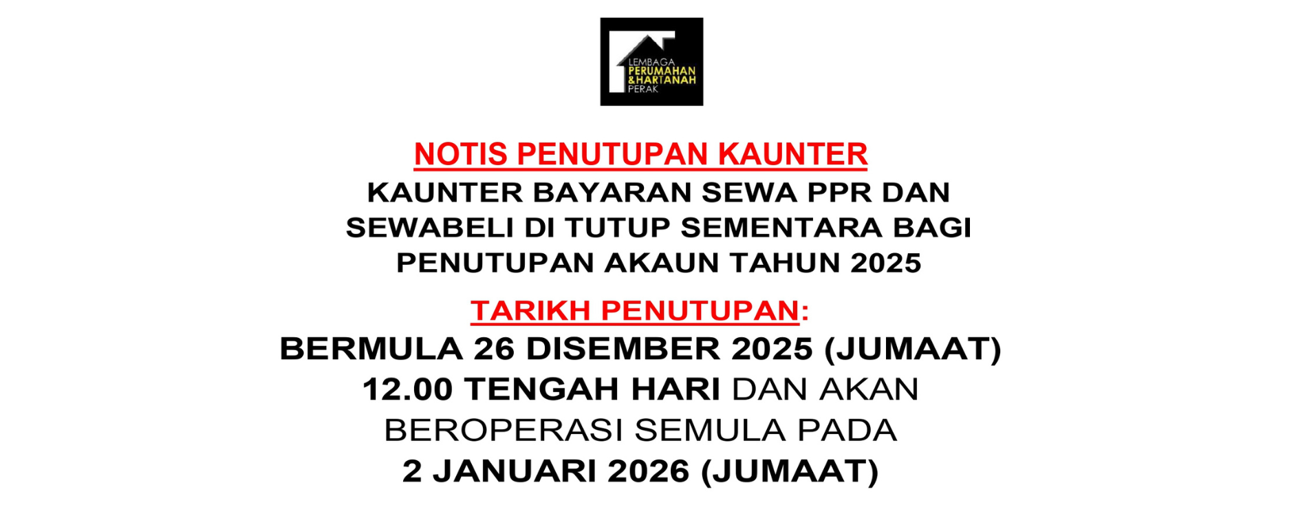 B.Bagi permohonan rayuan kali pertama dan rayuan seterusnya yang telah diluluskan oleh LPHP, pembayaran penalti boleh dibuat melalui kaedah Tunai, Cek atau Banker’s Cheque sahaja di atas nama LEMBAGA PERUMAHAN DAN HARTANAH PERAK.